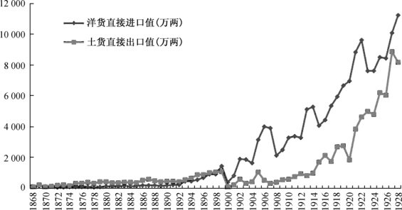 图6-4 1868—1928年天津进出口货物货值