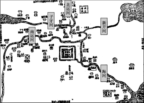 永乐二年(1404年)设天津卫,《明实录》载:“永乐二年十一月己未,设天津卫(图6-2)。上以直沽海运商舶往来之冲,宜设军卫,且海口田土膏腴,命调缘海诸卫军士屯守。”[13]此为天津名称之始。