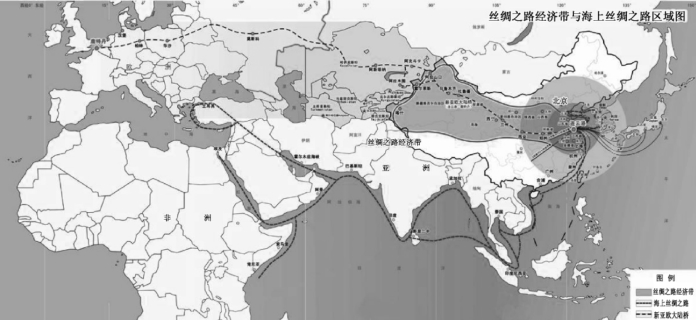 图7-3 丝绸之路经济带与海上丝绸之路区域图
