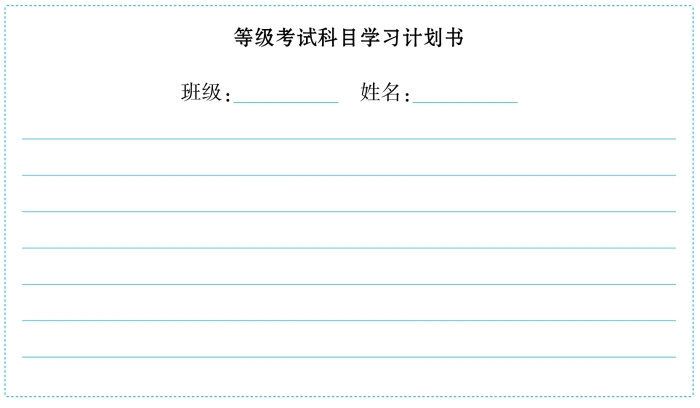 下面,请你为自己设计一份可行的等级考试科目学习计划书,并将要点写在下面方框的横线上。