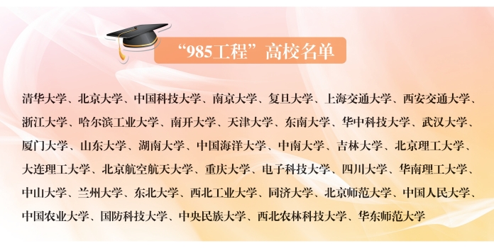 在我国的高等院校行列中,曾有两个大家熟悉的特殊概念——“211工程”高校和“985工程”高校。近年来,又出现了“双一流”建设工程高校的概念。那么,这些概念究竟代表的是什么意思呢?