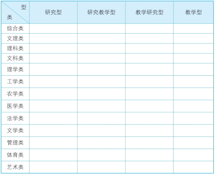 1.大学的办学目标之一是培养高素质专门人才,但有的是培养高素质学术型人才,有的则是培养高素质技能型人才,等等。下面,请你结合自己的职业生涯规划,把你认为适合自己就读的大学类型,在下表中对应打“√”。