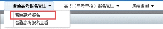 (3)报名。在导航菜单栏选择需要的项目进行报名:点击“普通高考报名”或“高职(单考单招)高考报名”(如下图所示)。