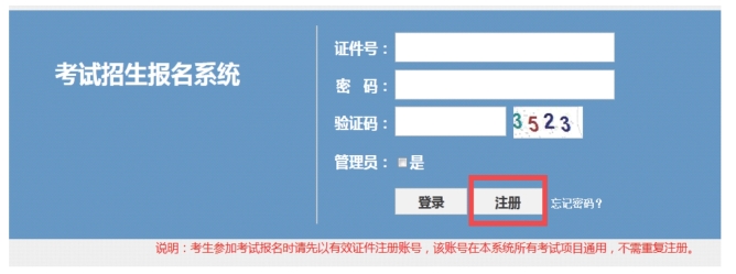 (1)注册。考生进入系统后,需要先完成注册,点击“高考报名”图标,进入考试招生报名系统首页(如下图所示):