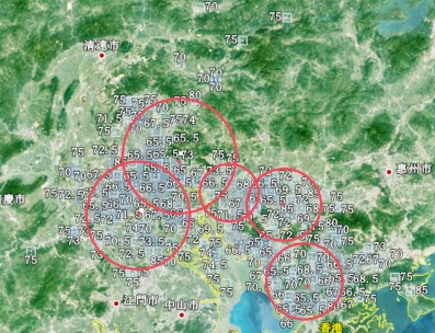 通过Google对五点的精确定位,我们发现这五个圆心大致对应我国五个市(区)中心位置: