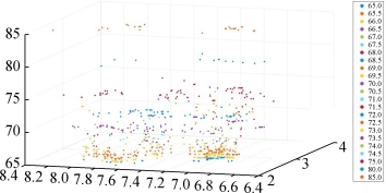 首先,将经纬度坐标值与定价价格的对应关系,通过标准化数据转化为空间直角坐标下的直角坐标,得到各层次点的分布情况如图5所示。