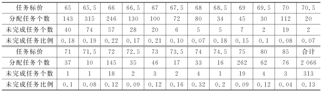 从而根据上述的定价方案得出任务完成度,结果如下表: