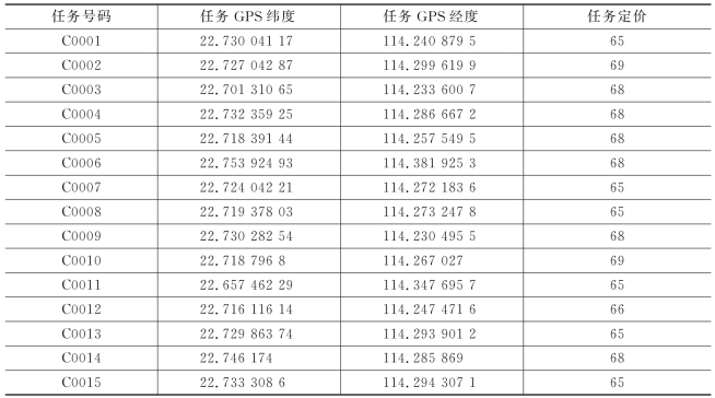 根据问题分析,我们可以运用上文中的任务定价模型对附件三的数据进行任务定价,得出基于附件三的任务定价方案如下表所示,其余见附录材料。