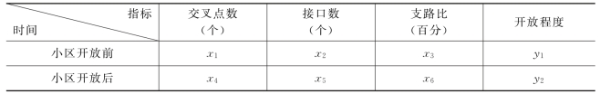 在考虑上述原则之后,结合开放型小区的背景资料以及相关小区建设理念可以用小区道路的有关参数来表征小区的开放程度。分析得出以下指标: