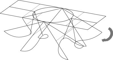 为建立精确描述折叠桌动态变化的模型并使其更具一般性,将折叠桌抽象成一个动态变化的空间曲面,折叠桌动态变化模型如图1所示。