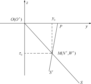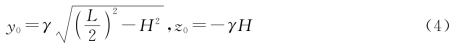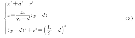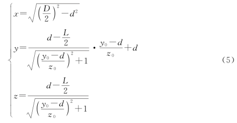 其中,y0、z0满足的几何关系,如图4沿x轴方向投影图所示。