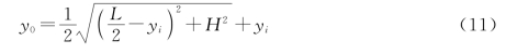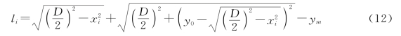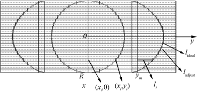 由于离散后钢筋所在位置与理想时有偏差,需修正槽下端的曲线,如图6中,lideal为理想情况下的槽下端曲线,ladjust为离散后的槽下端曲线。记每条桌脚的轴线夹于直线ym和曲线ladjust之间的长度即开槽长为li,易知