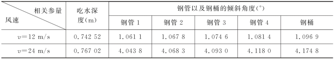 表2 不同风速条件下的相关参量值
