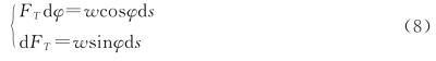选取锚链某一微元,其受力分析如图10所示。
