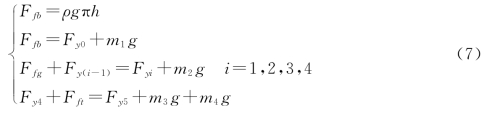 为在数学上处理方便,本文在物体的受力分析图中,以力的大小标记,即为数学上待求解的未知数,箭头仅表示力的方向,浮标对应受力分析如图5所示。
