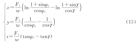 此式表明锚链上任意点处的张力的水平分量相等,这与描述钢管与钢桶状态的数学模型的结果相同。以锚链与锚的接触点为原点,建立如图11所示坐标系。