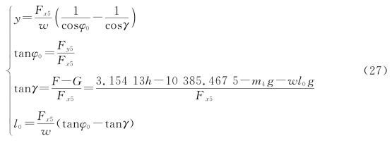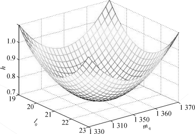 在上述条件下,图26给出了选取Ⅱ号锚链时的浮标吃水深度h、锚链长度l0与重物球质量mq三者之间的关系: