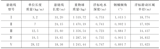 从图中可以看到,系统有关于浮标吃水深度的一组优化解。根据上述原理,可以得出分别选取不同型号锚链的优化解,如表6所示。