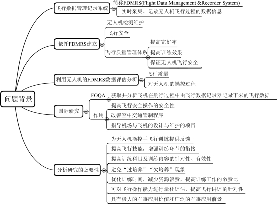 对于无人机,分析飞行数据可提高飞行安全操作的安全性,改善空中交通管制程序,指导机场与飞机的设计与维护的项目。基于飞行数据的飞行质量评价在无人机操控训练中具有非常重要的意义,它可为无人机操控手飞行训练提供反馈,是提高飞行技能的有效途径。可增强训练环节的衔接,提高训练科目及训练内容的针对性、有效性,通过避免“过培养”“欠培养”现象的发生,优化训练时间,减少资源浪费,提高训练工作的效费比;可对飞行操作能力进行量化评估,提高飞行讲评的针对性;具有极大的军事应用价值和广泛的军事应用前景。因而有必要依据飞行数据对无人机的飞行质量及无人机操控人员的操作状况进行分析研究。