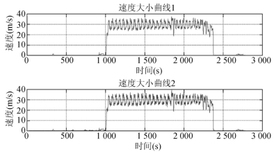 本文选取全球定位系统的速度作为无人机的速度,并利用时间轴同步模型将其与经纬度时间轴同步,得到速度大小随时间的变化曲线,如图9所示。