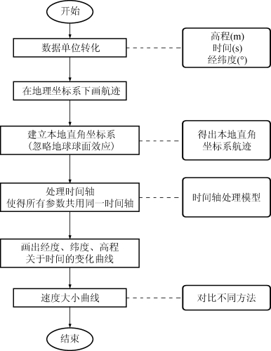 由于采样频率的差异,不同参数的时间轴并不完全同步,这就需要建立统一的时间轴模型,本文以经纬度与高程的时间序列为基准,选取经纬度与高程的初始时间为起始时间,针对不同维度的其他参数,比如俯仰角、滚转角、航向角等,将其时间序列减去经纬度与高程的初始时间,以此保证所有参数的时间起始与终止维度保持一致。
