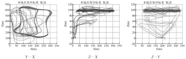 图7 无人机在本地直角坐标系下三个投影平面上的航迹