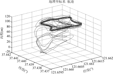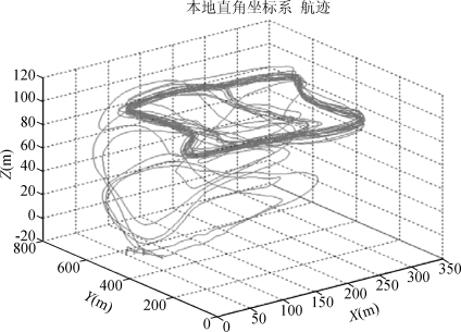 而后,调用MATLAB地图工具包将经纬度坐标转换成直角坐标,在Z轴方向,由于飞行范围较地球半径而言很小,根据模型假设,忽略因地球的弧面对坐标转换过程中高度的影响,由此可以得到本地直角坐标系下无人机的航迹,如图6所示。