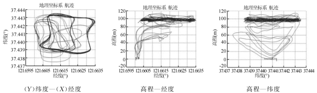 图5 无人机在地理坐标系下三个投影平面上的航迹