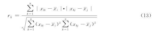 式中,rij为标准化数据的第i个指标与第j个指标间的相关系数,并且可得相关系数矩阵R。