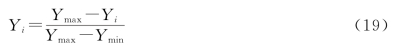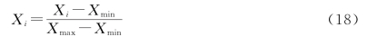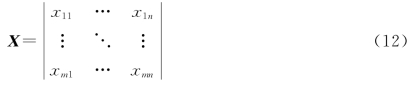 (1)求出标准化数据指标的矩阵。设脆弱性评价指标个数为n,评价对象个数为m,数据矩阵为X,xij表示第i行的第j个数值,则: