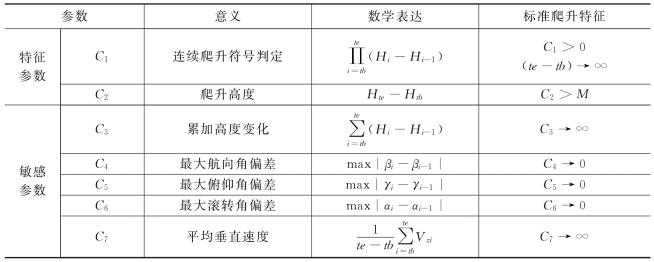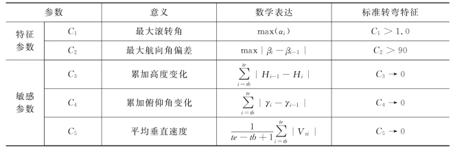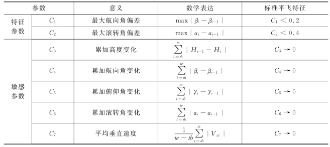结合问题三和问题四中的讨论结果,我们可以得出与飞行动作相关的敏感参数和特征参数,如下表所示: