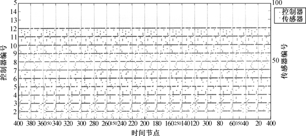 由图1和图2可以初步看出传感器工作状态及控制器工作状态随时间的分布都比较均匀,这给我们解决问题带来了一定的便利。
