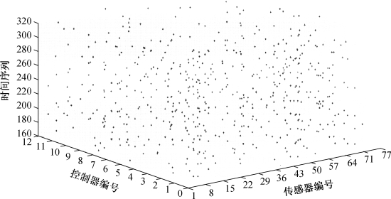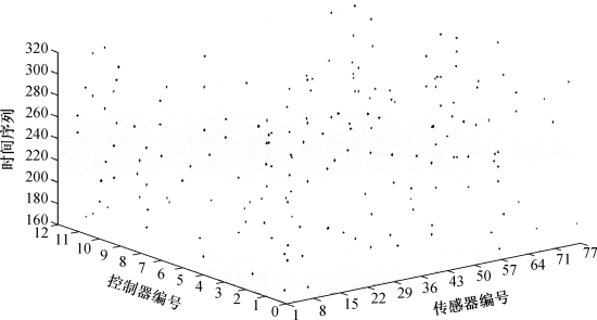 问题(3)模型Ⅱ的结果中共有成功匹配180个,在算法上模型Ⅱ可以实现使尽量多的传感器满足接收到完整指令,效果实际和模型Ⅰ差不多,但它的优点是冗余的指令少,使结果更加清晰,也降低了控制器的消耗。