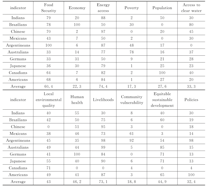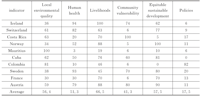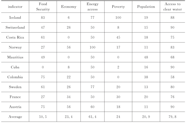The 10 countries in the world acknowledged as the most sustainable development and the 10 countries,the least sustainable development are shown in Table 3,Table 4.