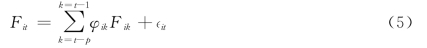 In the formula,єit~N(0,δ2)represents the random effect of unexpected factors and the varianceδ2 is obtained from the statistic of historical data.p refers to the number of historical data for predictions and the more the historical data are used,the more accurate the prediction trend isφik refers to the impact of data in the year k on the predicted data,which is calculated by auto-regression of historical data.