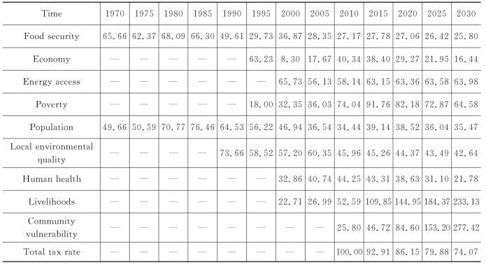 Based on the development of indicators from 1970 to 2010,we can predict the development from 2010 to 2030 as shown in Table 5.