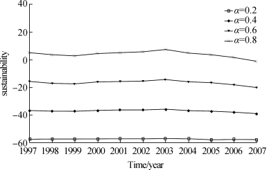 αand(1-α)respectively represent the weights of Pressure and State which have crucial impact on the sustainable development of Haiti.We select differentα values to analyze the evaluation results as shown in Figure 3.