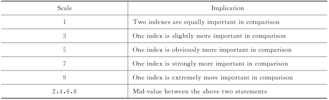 The correlation coefficient is used to determine the real relative importance between the two indexes and then the scale values are calculated according to the importance.