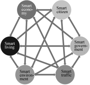 After the dimensionless processing of index data,the index weight should be established,that is,the influence of indexes on smart cities.The traditional analytic model uses comparison methods to determine the weight of two indexes manually,so with the great fluctuation of errors,subjective misunderstandings may lead to the inaccuracy of the weight determination.On this basis,the traditional analytic model cannot solve such problems because the indexes for evaluating smart cities are interrelated and interacted.The paper adopts the improved network analytic hierarchy model to determine the weight.