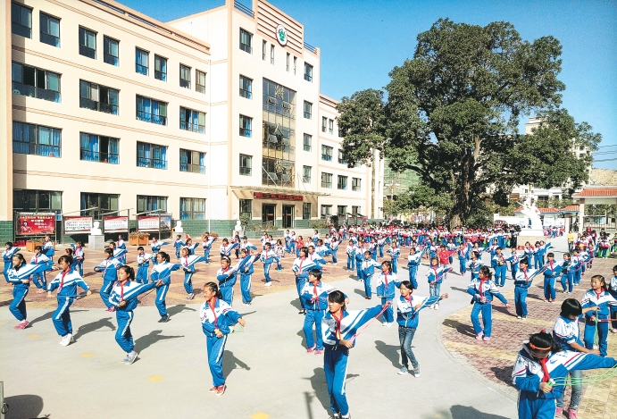 三是体育活动。开设田径、球类、大课间操活动等多种多样的体育活动项目,培养了孩子勇敢坚强的意志、活泼开朗的性格和健康的体魄。2016年,学校投入10万元聘请了2名陕北安塞腰鼓专业教练,对全校近八百名学生进行了为期20天的指导训练,将传承十几年的安塞腰鼓再次提升,打造为全校性的、独具一格的“一校一品”活动。2017年5月,皋兰县组织开展第十届师生艺术节,特邀学校腰鼓队在艺术节开幕式上进行展演,整齐的队伍,洒脱的身姿,鼓声滔天,喊声傲然,赢得社会各界的好评。