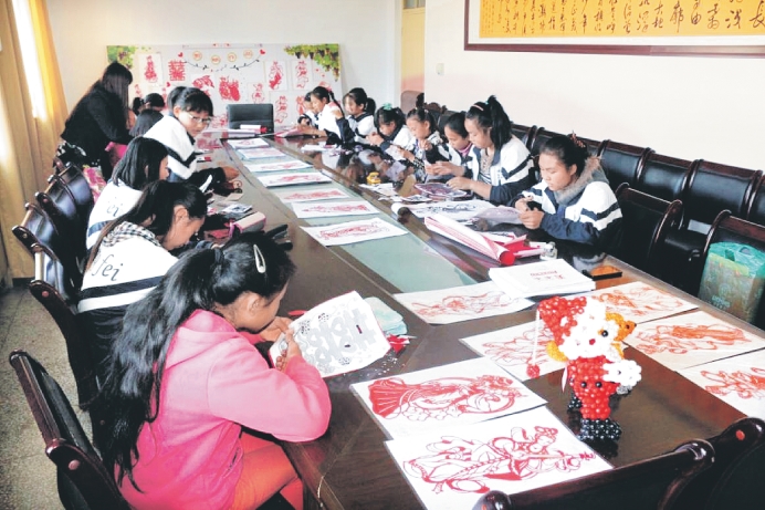 七里镇中学乡村学校少年宫正在开展剪纸活动