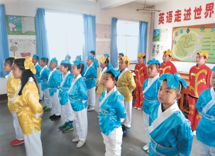 五是经典诗文诵读。充分运用传统经典和红色经典这一优质思想道德教育资源,以乡村学校少年宫为阵地,广泛开展经典诗文诵读活动。结合“书香校园”建设,编写了《品味书香,享受经典》校本教材,深受孩子们喜欢。小学部通过《新三字经》《弟子规》《论语》选段及唐诗宋词等的诵读,进行中华民族优良传统教育,培养小学生良好的行为习惯。中学部通过诵读经典古诗文和中外名著,理解经典诗文内涵,提高文化素质,陶冶道德情操,激发爱国主义情感。