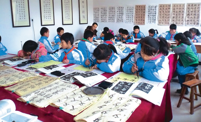 一是注重学生人文素养提升。学校把学生人文素养提升作为活动开展的重中之重,在小组活动内容设置上十分注重学生的人文素养提升,进一步加强将传统优秀文化与具体教学内容相融合,不断提升学生文化素养。依托本地丰富的书画资源,开设了书法活动小组,主要学习书法基础知识、用笔技巧、临摹;开设了绘画课,重点学习中国画的笔墨技法和美学基础。通过对书法美术兴趣小组的开设,让学生在学习书画的过程中领悟传统文化的精髓要义;开设了经典诵读小组,开展古体诗词名篇的诵读活动,让孩子们感悟博大精深的中华民族文化,不断提升他们的文化内涵。