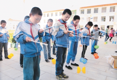 始终把整合资源、建强阵地作为乡村学校少年宫建设工作的重中之重。在硬件建设上,以实施校安工程、迎接义务教育均衡发展验收为契机,建成独具特色、育人氛围浓厚的计算机室、电子琴室、舞蹈室、美术室4个,十字绣、演讲、手工制作、象棋、剪纸、合唱、书法、经典诵读、课本剧一室两用活动室9个,开辟室外活动场地5个(1000平方米),建成标准舞蹈室1个,购置体育器材470件、音乐器材320件、美术器材404件,并对器材进行了逐一登记,专室专管、专人管理,为少年宫活动开展奠定了坚实的硬件支撑。在课程设置上,结合留守儿童兴趣爱好和工作实际情况,努力扩充社团数量、丰富课程内容,形成了德、智、体、美全面发展的课程结构,并将活动项目按照“低年级重游戏和语言课程,中年级重体育和综合课程,高年级重艺术和特色课程”的课程体系进行设置。同时以学生的需要为出发点,采用问卷调查等形式,了解学生的爱好需要,结合学校的课程体系确定设立项目,为学生全面发展搭建了多彩桥梁。目前,少年宫的活动社团由2014年建成之初的15个发展到现在的21个,开设了篮球、抖空竹等体育类课程,声乐与合唱、电子琴、鼓号、腰鼓、舞蹈等音乐舞蹈类课程,书法、绘画、手工制作、剪纸等美术类课程,科技、经典诵读、演讲、课本剧表演、诗歌朗诵等德育与综合类课程,少年宫课程设置齐全、内容丰富多彩,已成为正宁县少年宫建设格局中一道亮丽的风景。在师资配备上,按照“边教边学、自学特长”的原则,由学校体育、美术、音乐、科技特长教师担任少年宫活动辅导员,长期聘请民间艺人4人(其中剪纸1人、象棋1人、秧歌1人、腰鼓1人),退休老教师1人,社会志愿者2人担任少年宫专职辅导员,并按照结合特长、促进成长的原则,由专职辅导员每人带一名教师进行培养。同时,安排辅导员赴东方红小学、山河小学等少年宫建设先进学校进行参观学习和交流,积极学习成功经验和经典模式,通过“走出去学、请进来教”,让全体教师才艺技能迅速发展,实现了各尽其能、各展其才、共同参与的辅导员队伍培养目标。目前,学校共有辅导员31人,其中专职辅导员7人,兼职辅导员24人,为乡村学校少年宫活动开展提供了坚强的师资保障。
