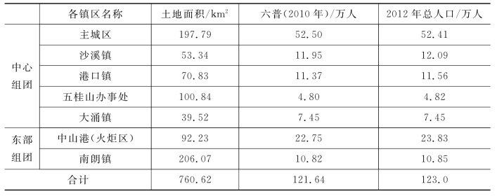 中山市中心城区各镇区土地面积和人口统计表