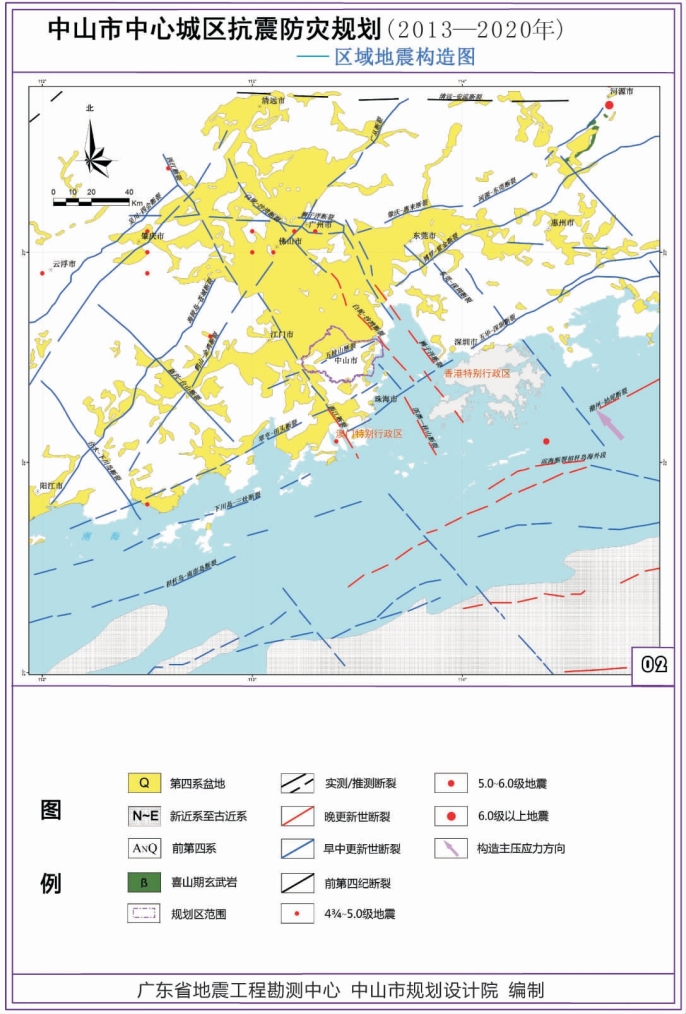 在沉积建造上,断裂是新生代海相沉积与陆相沉积的分界线,南侧珠江口外盆地主要为海相沉积,北侧珠江三角洲主要为陆相沉积。断裂带又是地壳厚度的突变带,断裂北侧地壳厚度达34km,南侧减至30km以内。断裂主要形成于喜山期,与南海盆地的扩张有密切关系,在横剖面上表现出向南倾斜并往南逐级下落的阶梯状陡坎。断裂控制了南侧珠江口外盆地的形成和发展,盆地沉积了厚达7000m的上第三系至第四系地层,其中第四系厚度就达280m。这套新地层的等厚线呈北东东向分布。