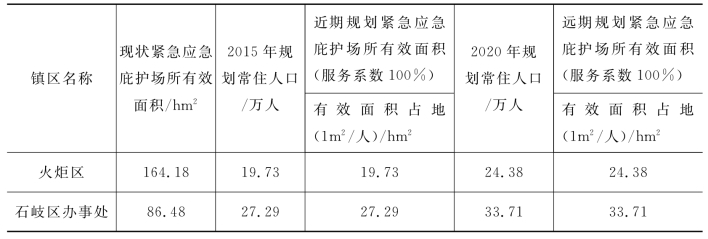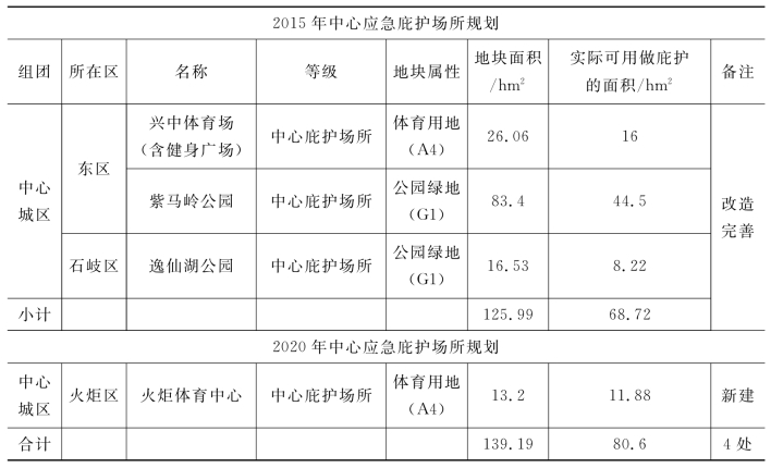 中心应急庇护场所主要依托市、区级公园绿地,以及大型体育场馆、市政广场等设置,总用地面积为139.19hm2,有效庇护面积80.6hm2,详见表8-3所示。