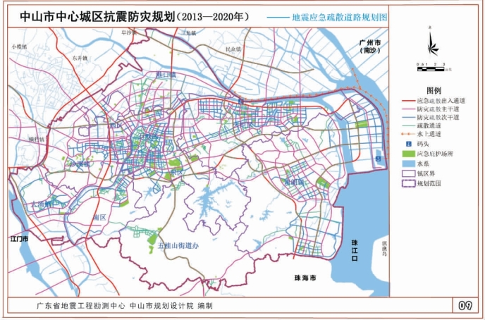中山市中心城区紧急应急庇护场所分布、避震疏散体系规划、地震应急疏散道路规划详见图8-2、图8-3、图8-4。