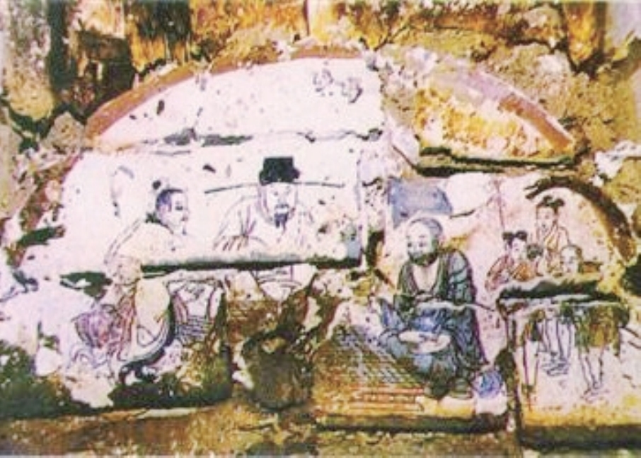 据南宋叶隆礼《契丹国志》记载:“辽人……夏月以布易毡帐,藉草围棋,双陆或深涧洗鹰。”1993年3月,在河北省张家口市宣化区下八里村7号辽墓的甬道木门门额上发现一幅围棋壁画,名曰《三老对弈图》。画面中间一人身穿宽大袍服,戴着幞头,左侧为束髻老者,右侧为僧人模样。三人中间是棋盘,盘上的线条采用写意手法,模糊不清。这幅表现围棋活动的绘画,表明在契丹族建立的辽国,围棋的文化氛围已经相当浓厚。