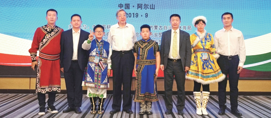 赫哲族代表队与中国围棋协会领导合影(左一领队何思明、左三王海全、左五何致睿、右二何郡)